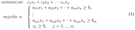 Desejava-se então, obter uma dieta adequada, que atendesse a uma quantidade mínima bi, i = 1,..., m do nutriente i, com um custo mínimo. Dessa forma, o modelo matemático original da dieta é dado por: